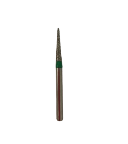 Рабочая часть диаметром 1,4 мм выполнена в виде заостренного конуса, благодаря чему обеспечивается точность манипуляций. Алмазный абразив крупной зернистости дает быстрый и комфортный рез. Хвостовик толщиной 1,6 мм надежно фиксируется в ротационном наконечнике, выдерживая скорости вращения до 300 000 об/мин без эффекта биения.